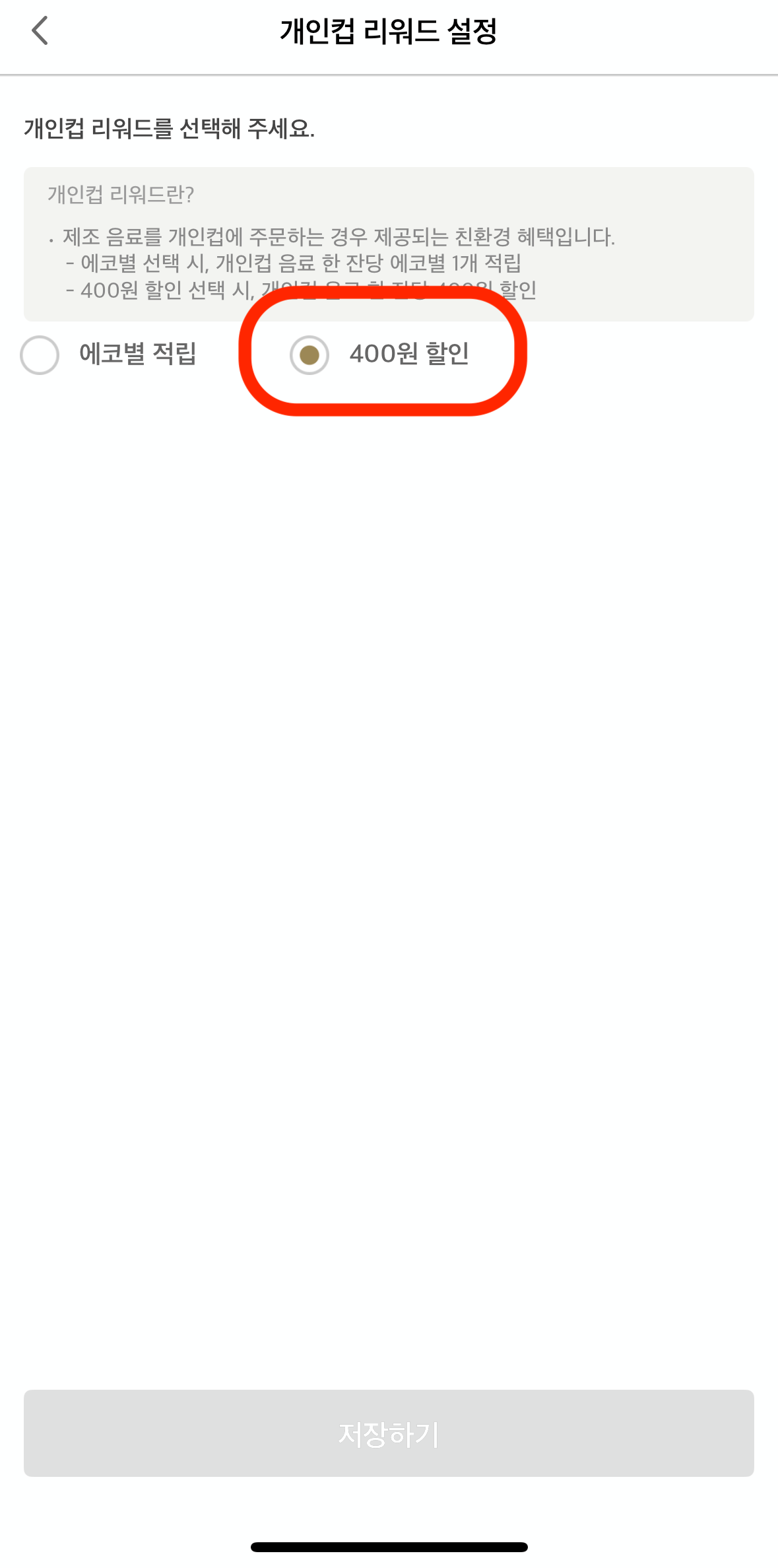 🧴 개인컵 리워드 → 400원 자동 할인 설정 필수